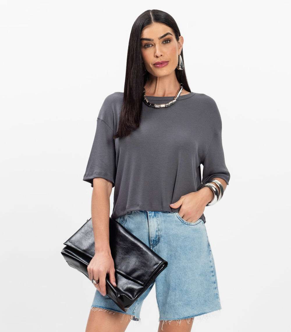 T- Shirt Feminina Canelada Infinita Cor Cinza