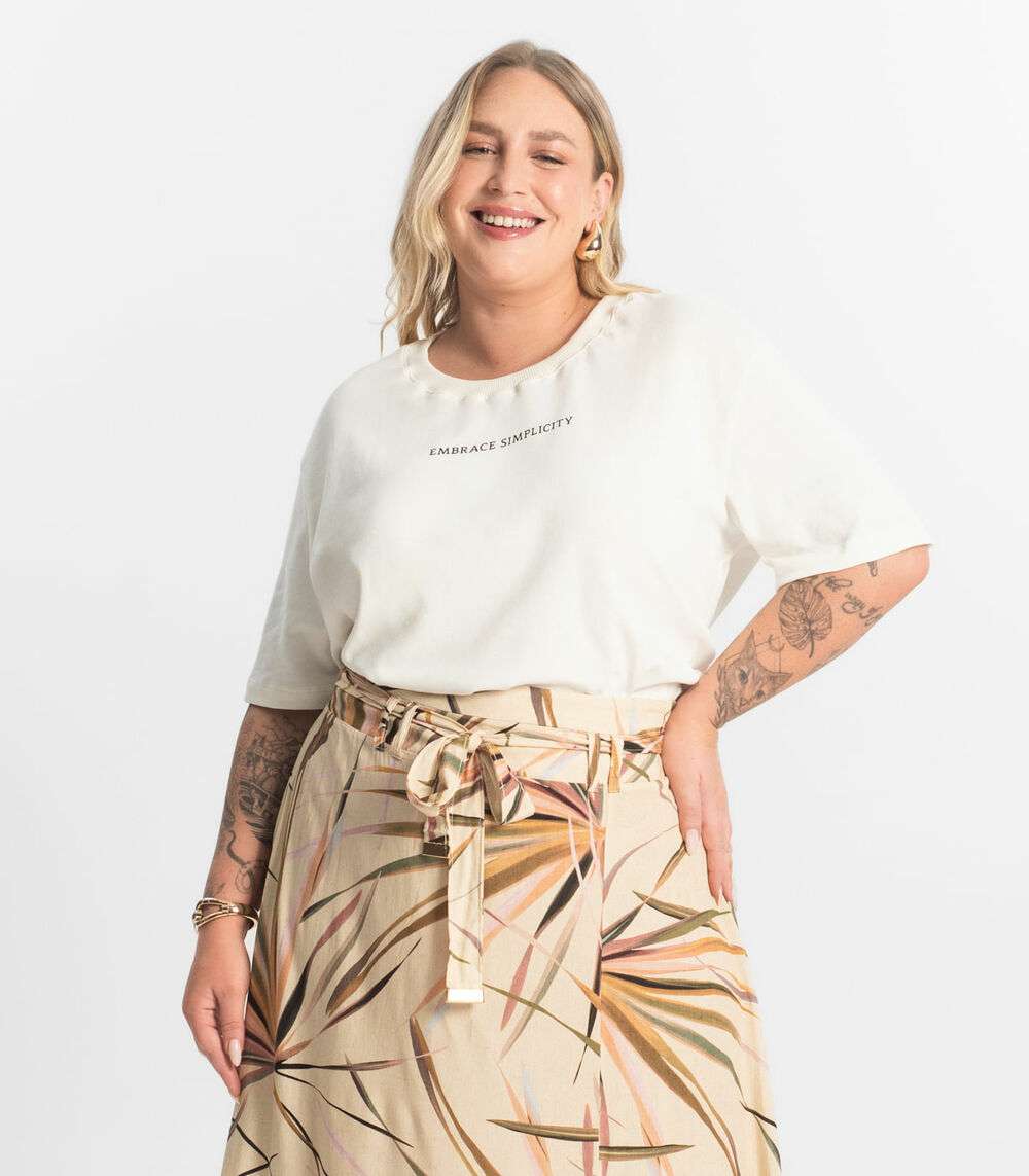 T- Shirt Feminina Plus Size Secret Glam Bege