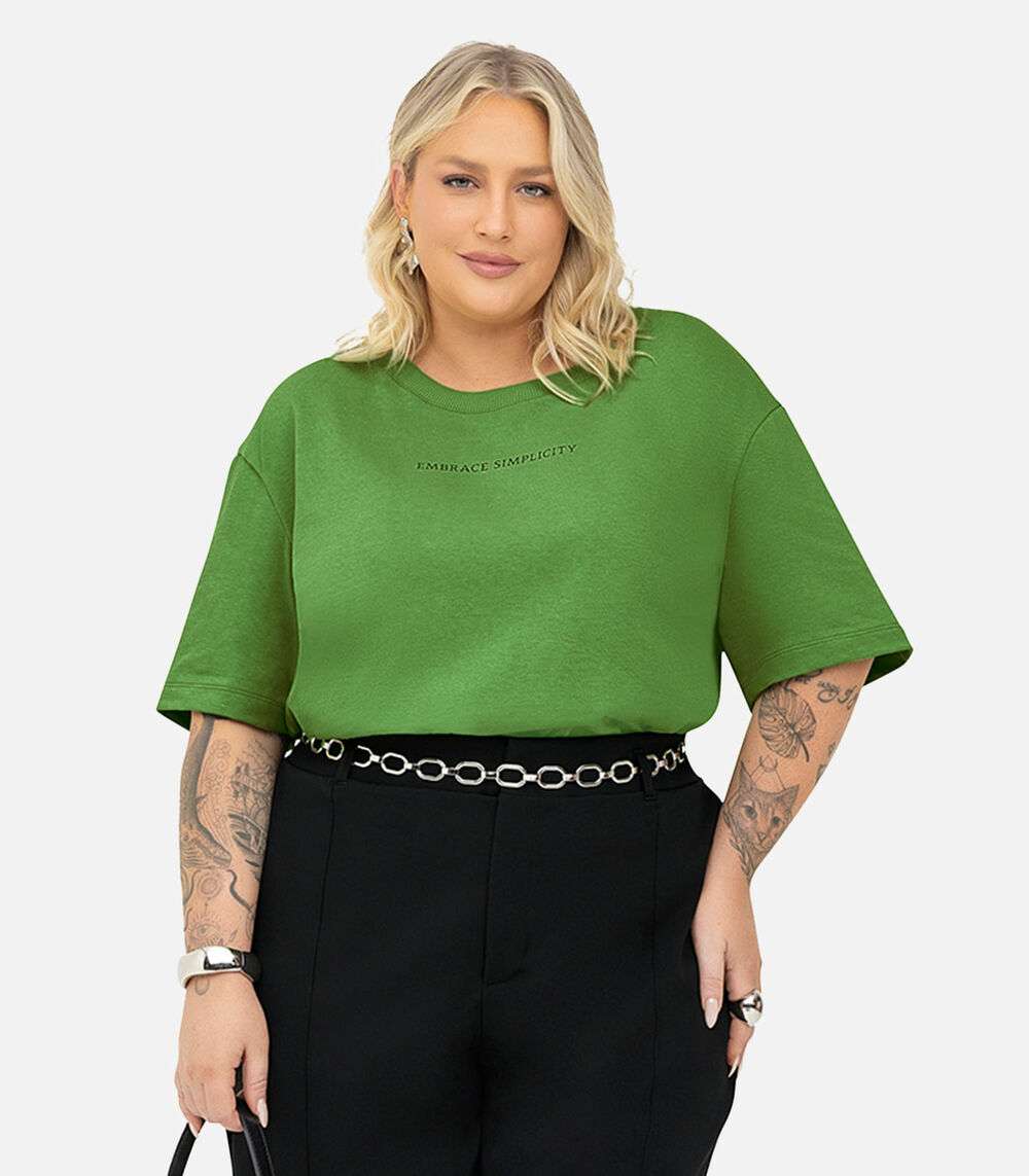 T- Shirt Feminina Plus Size Secret Glam Verde