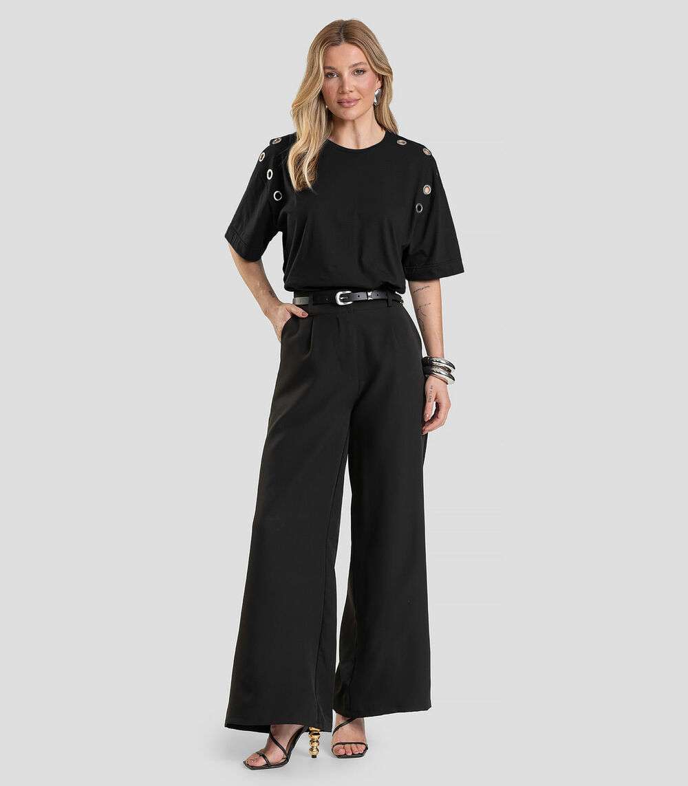 T- Shirt Oversized Feminina com Ilhós Dianna Preto