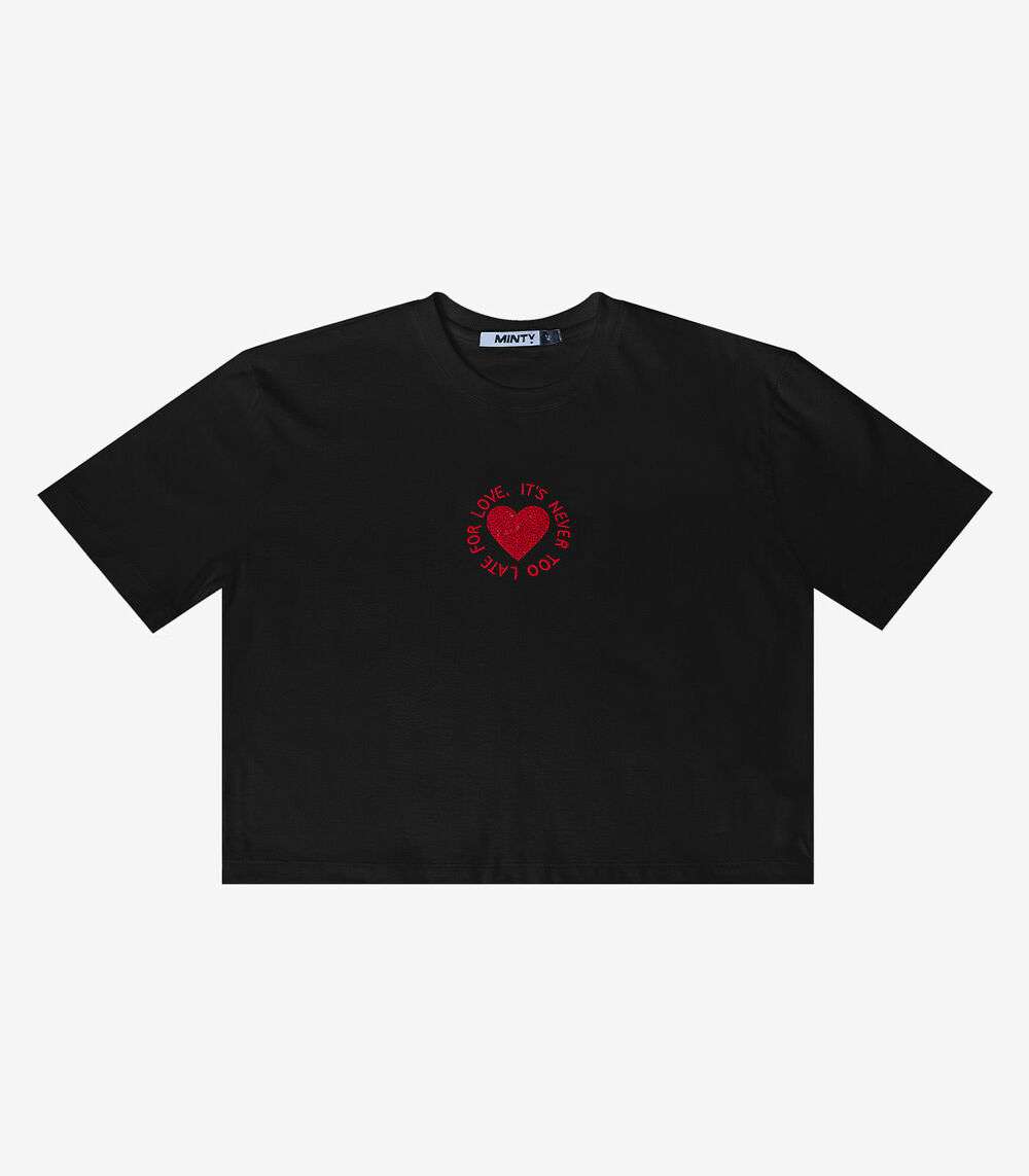 T-shirt Meia Malha Bordada Minty Preto