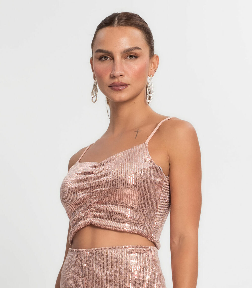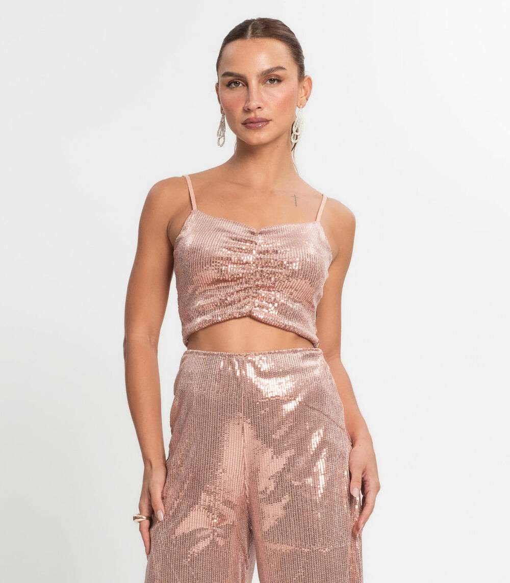 Top Cropped Em Paetê Endless Unica