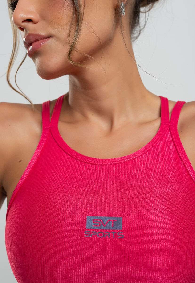 Top Suplex Canelado Brilho com Decote Alto e Tiras Rosa Salvatore Fashion