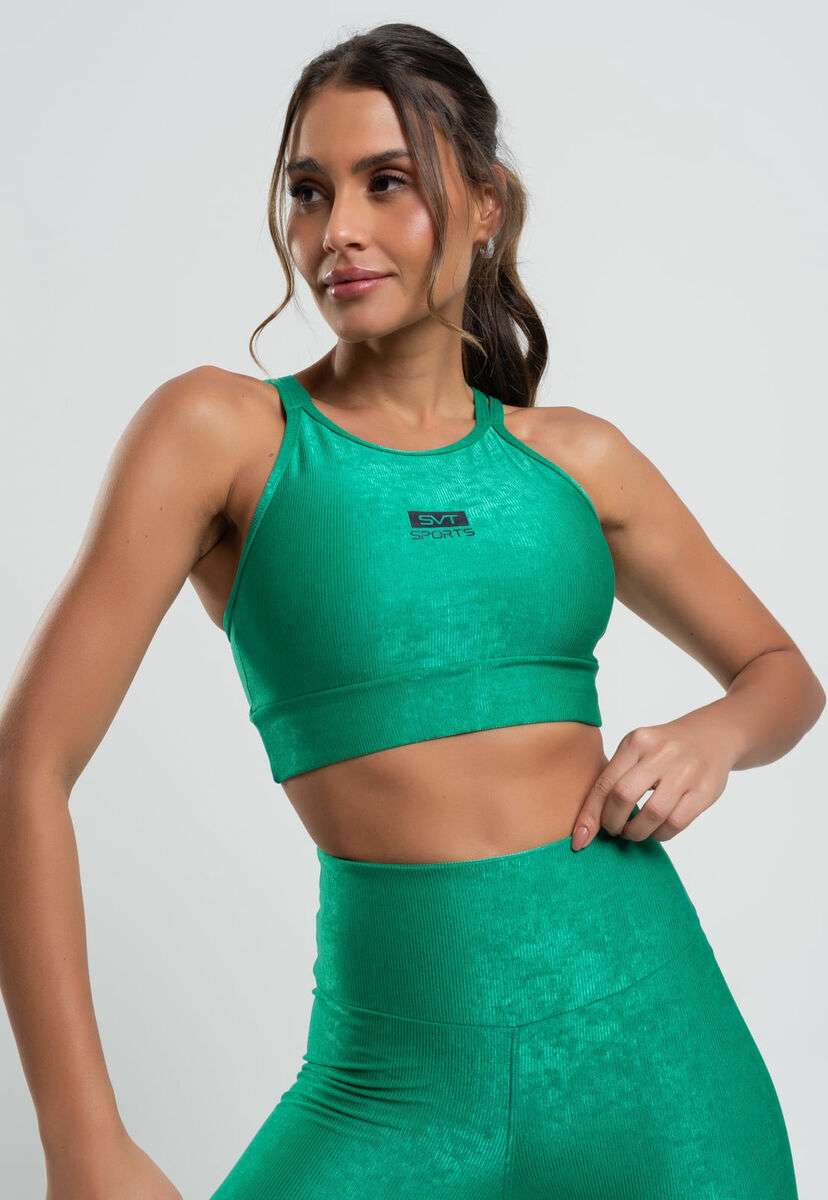Top Suplex Canelado Brilho com Decote Alto e Tiras Verde Salvatore Fashion