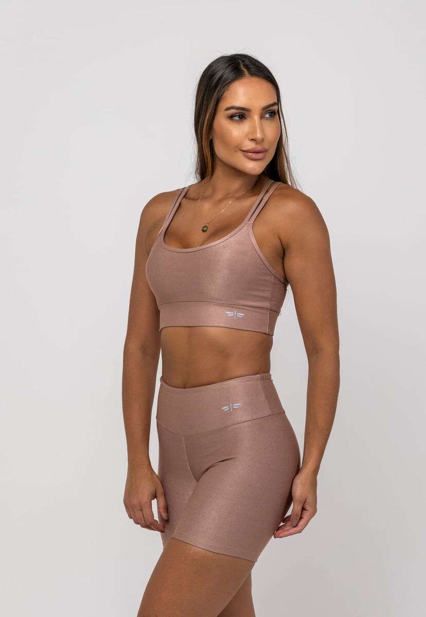 Top Suplex Canelado Brilho Decote e Tiras Marrom Salvatore Fashion