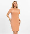 Vestido Acinturado Em Ribana Canelada Rovitex Marrom