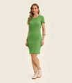 Vestido Acinturado Em Ribana Canelada Rovitex Verde