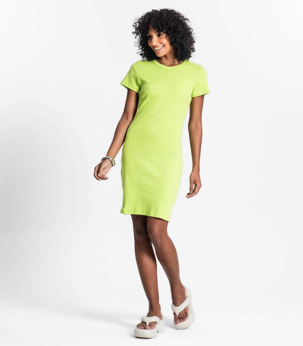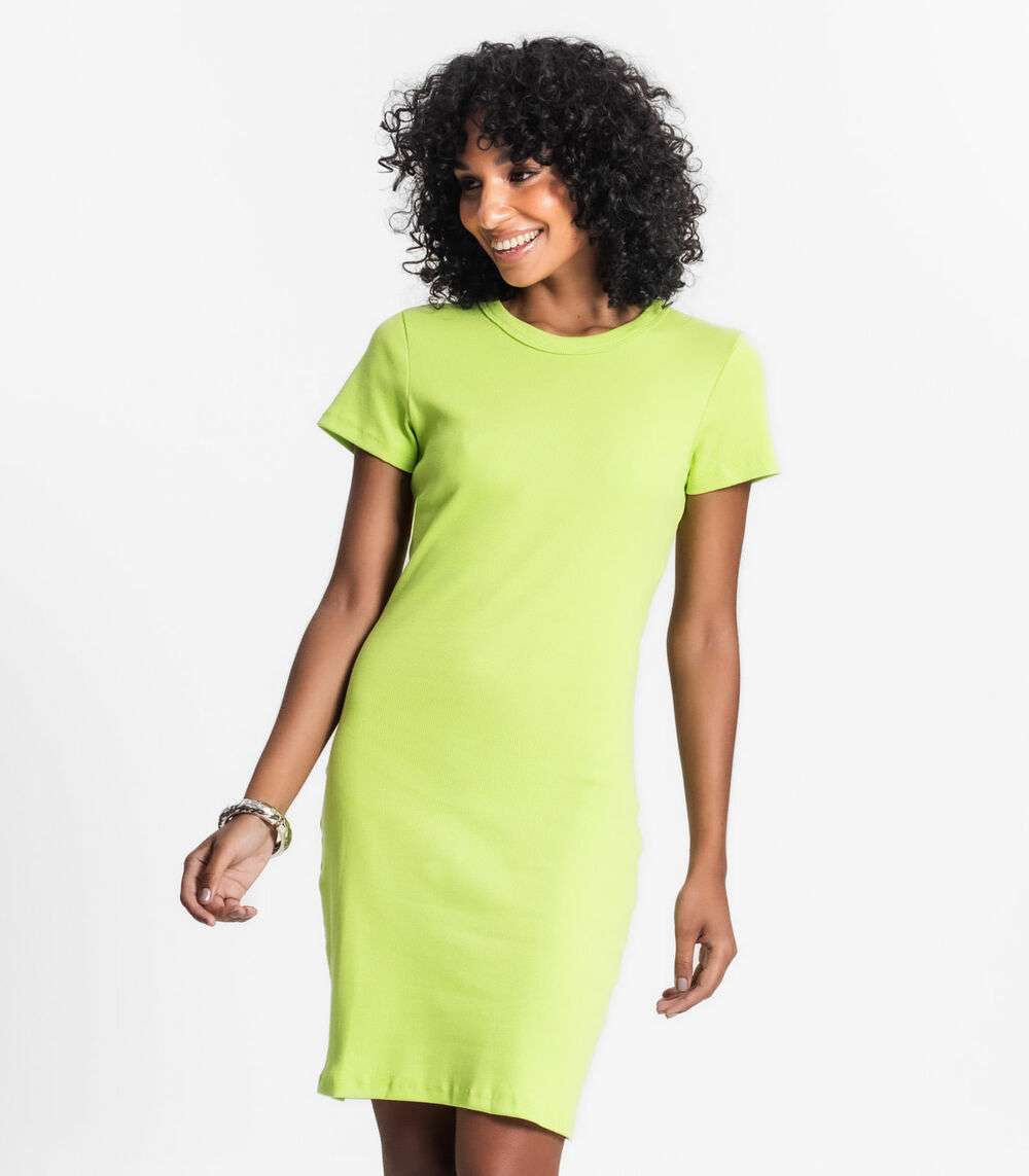 Vestido Acinturado Em Ribana Canelada Rovitex Verde