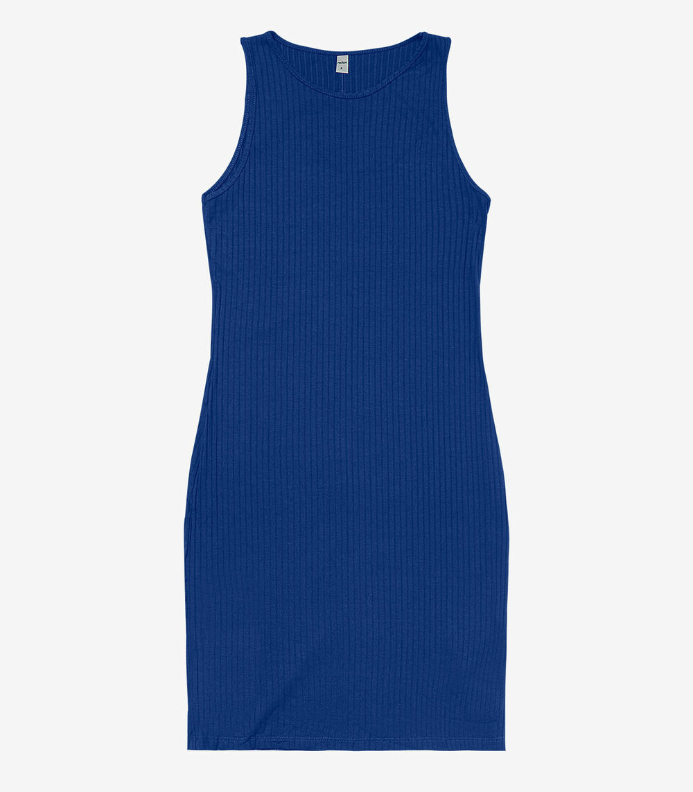 Vestido Curto Em Ribana Canelada Rovitex Azul