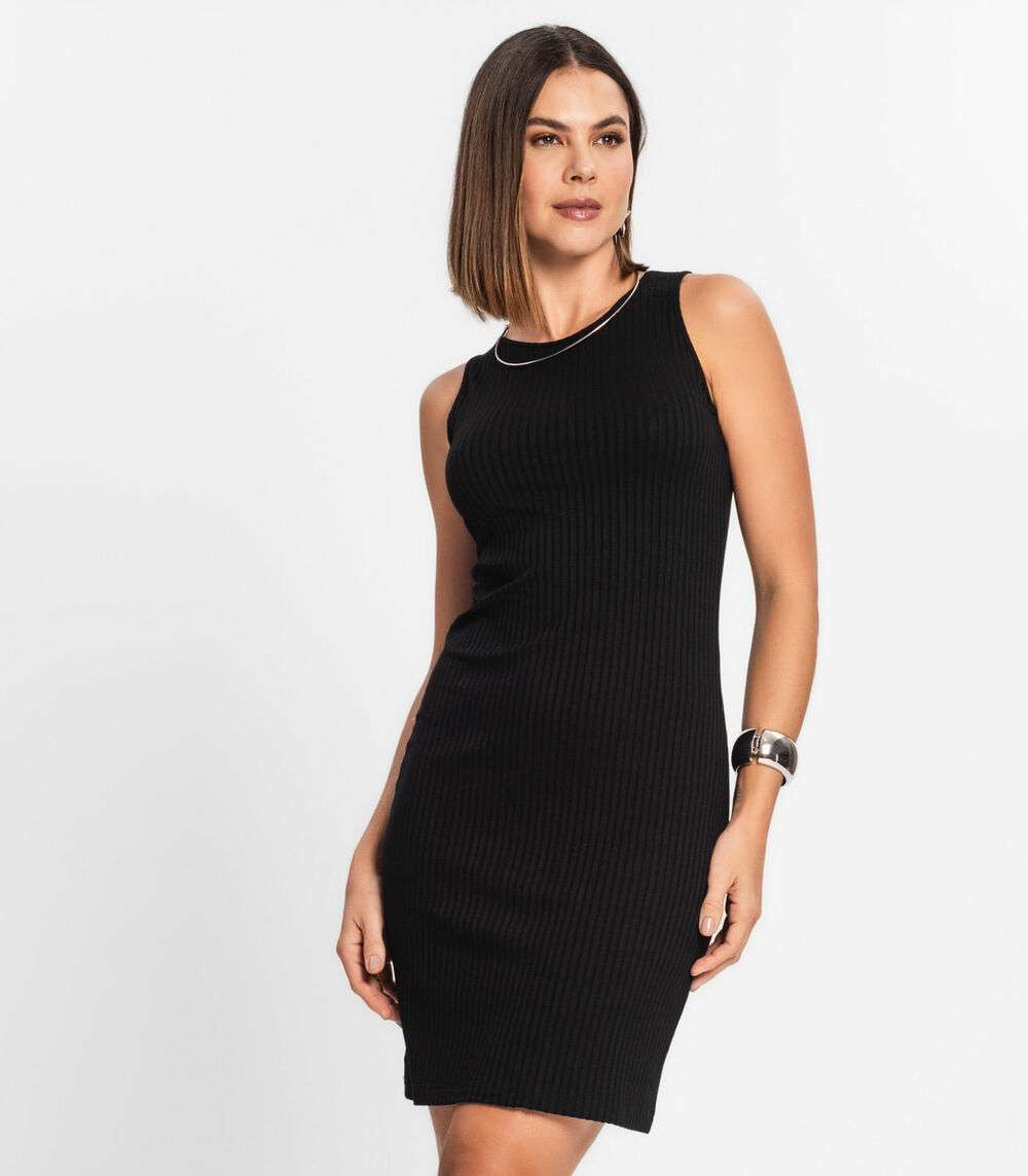 Vestido Curto Em Ribana Canelada Rovitex Preto