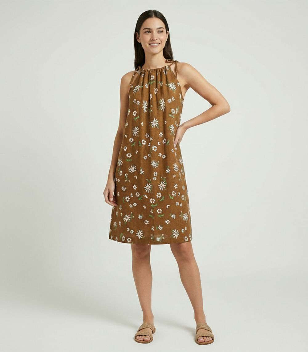 Vestido Curto Feminino Em Viscolinho Select Marrom