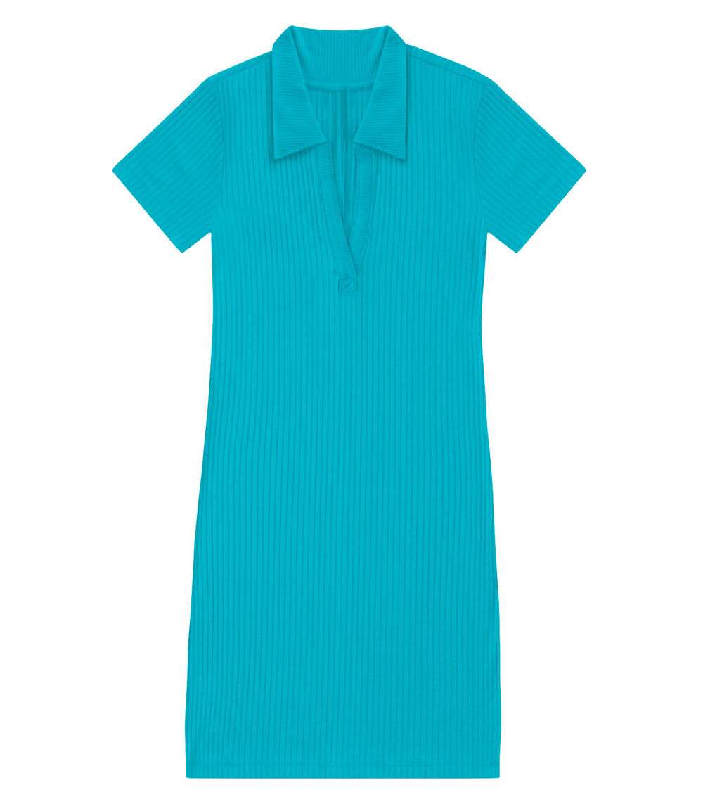 Vestido De Ribana Canelado Feminino Endless Azul