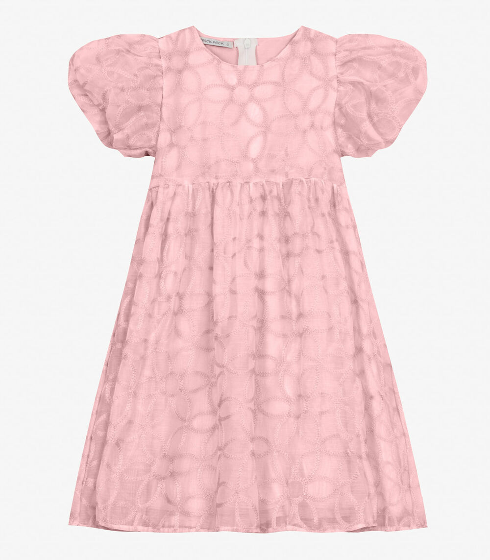 Vestido em Poly Bordado Viscose Khyara Trick Nick Rosa