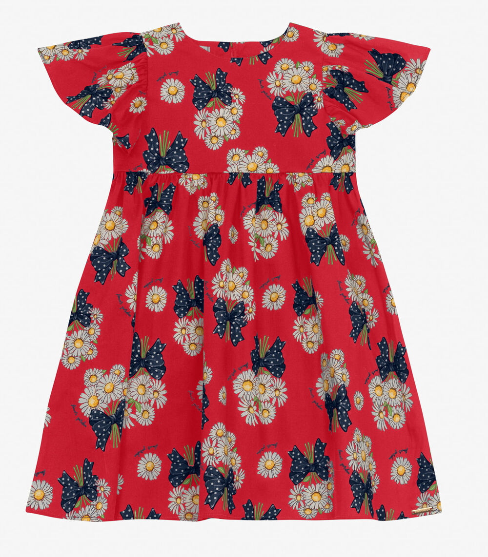 Vestido em Popeline Estampado Trick Nick Vermelho