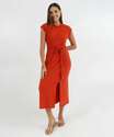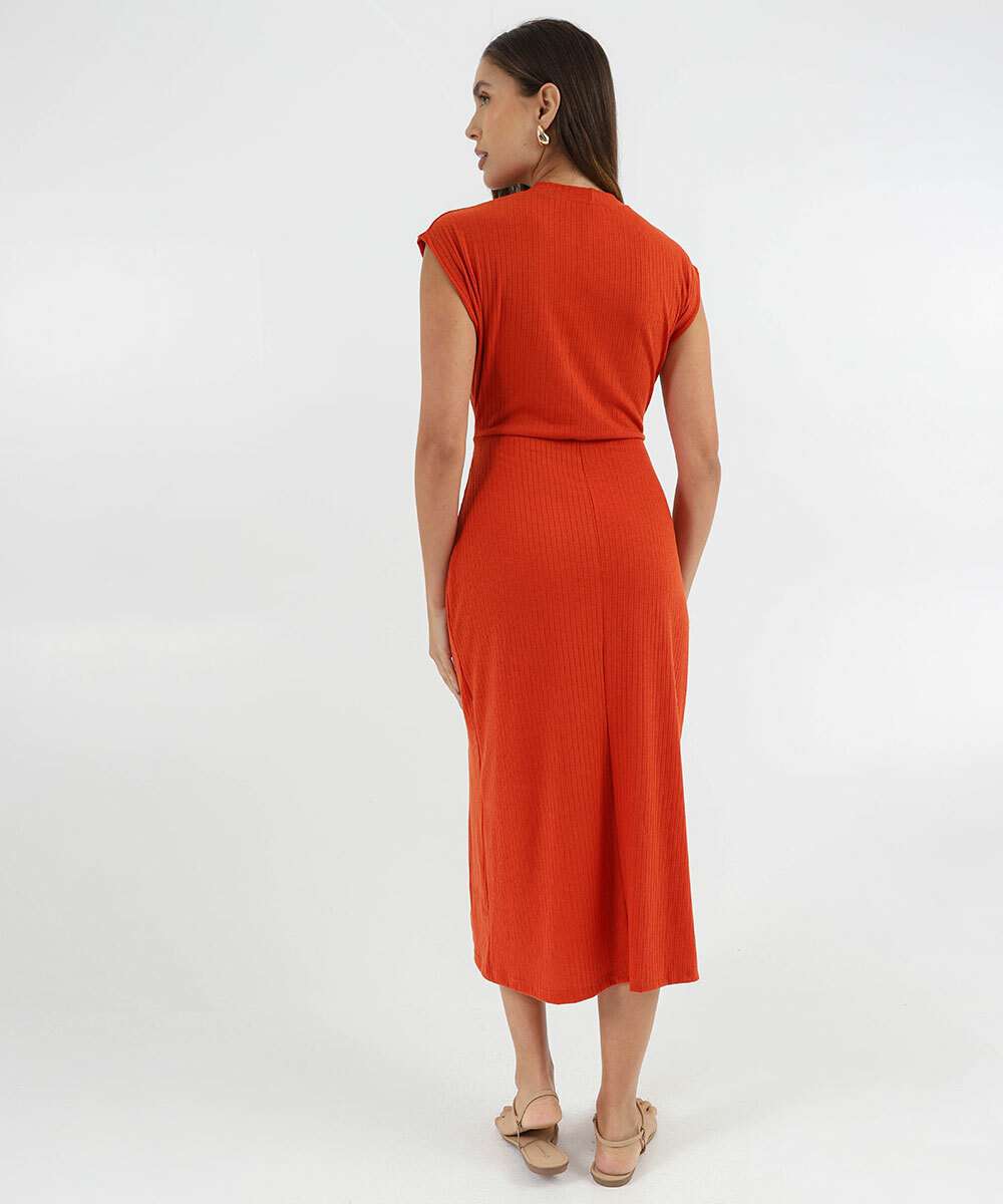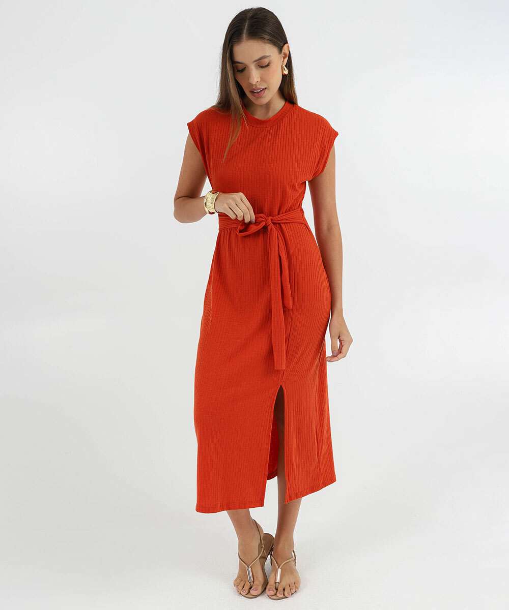 Vestido Feminino Canelado Midi Fenda Marisa Laranja