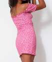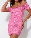 Vestido feminino, modelo ciganinha confeccionado em malha poliéster e elastano. Possui estampa flores, decote ombro a ombro com babado frufru, manga curta, acabamento e costura no tom.