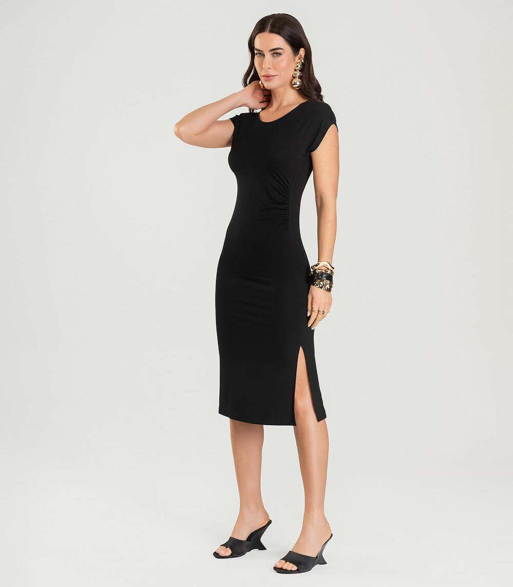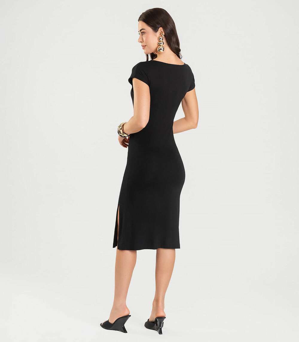 Vestido Feminino Decote Canoa Midi Dianna Preto