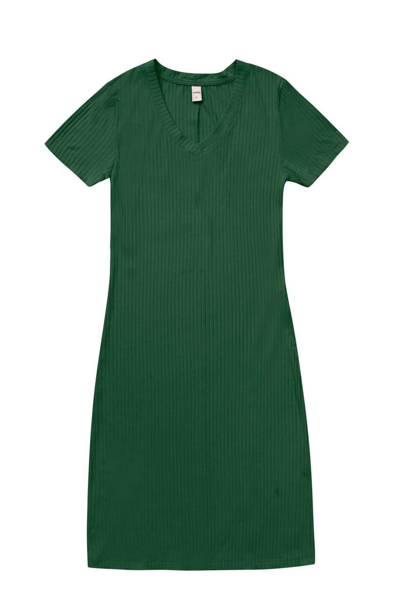 Vestido Feminino Em Ribana Canelada Rovitex Verde