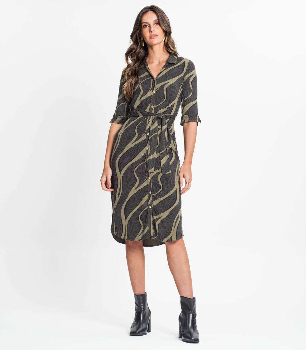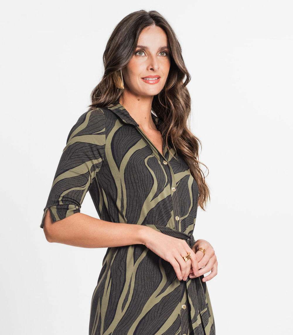 O Vestido Feminino Manga 3/4 Rovitex é a escolha perfeita para um visual feminino e elegante. Confeccionado em viscotorcion, proporciona um toque suave e um caimento impecável. Com gola dupla e 10 botões funcionais, o vestido apresenta um design sofisticado e prático, permitindo ajustes conforme preferência. A estampa rotativa confere um toque moderno e original à peça. Acompanhado por um cinto, o vestido destaca a cintura, proporcionando um visual ainda mais charmoso.
