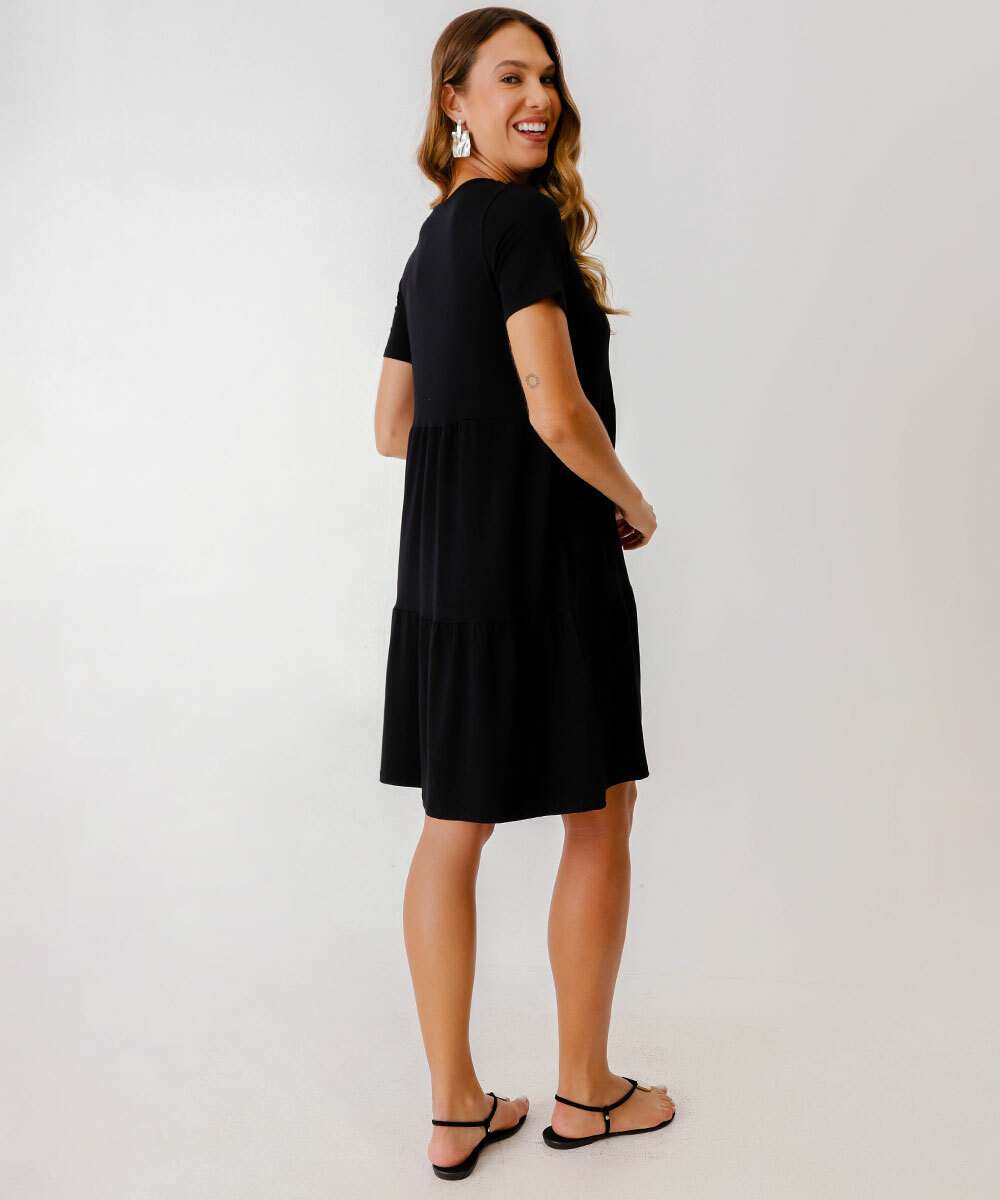 Vestido Feminino Manga Curta Marisa Preto