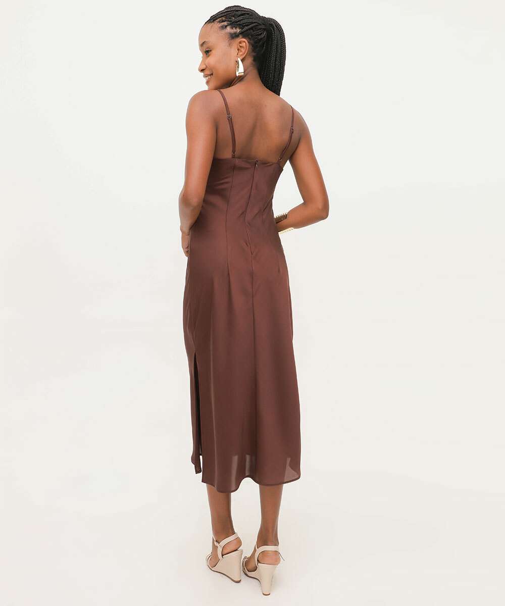 Vestido Feminino Midi Cetim Slip Dress Marisa