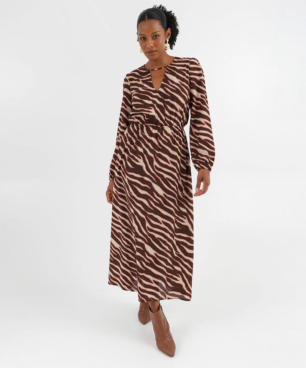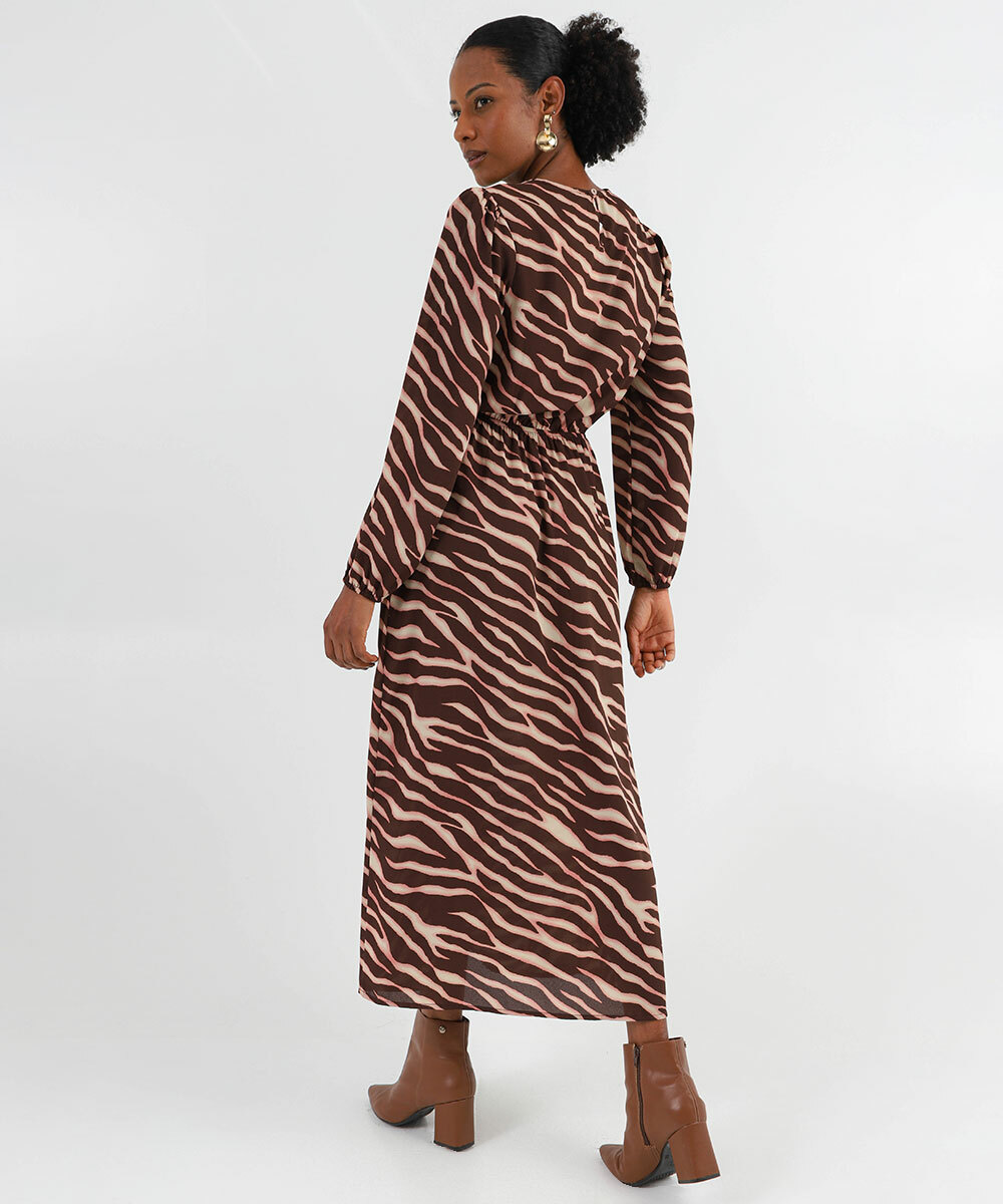 Vestido Feminino Midi estampado Marisa Marrom