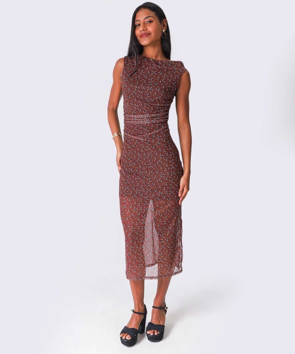 Vestido Feminino Midi Tule Estampa Flores Marisa