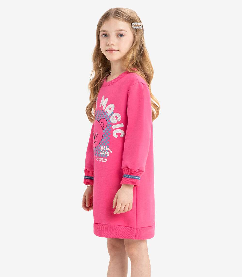 Vestido Infantil De Moletom Manga Longa Rovi Kids Rosa