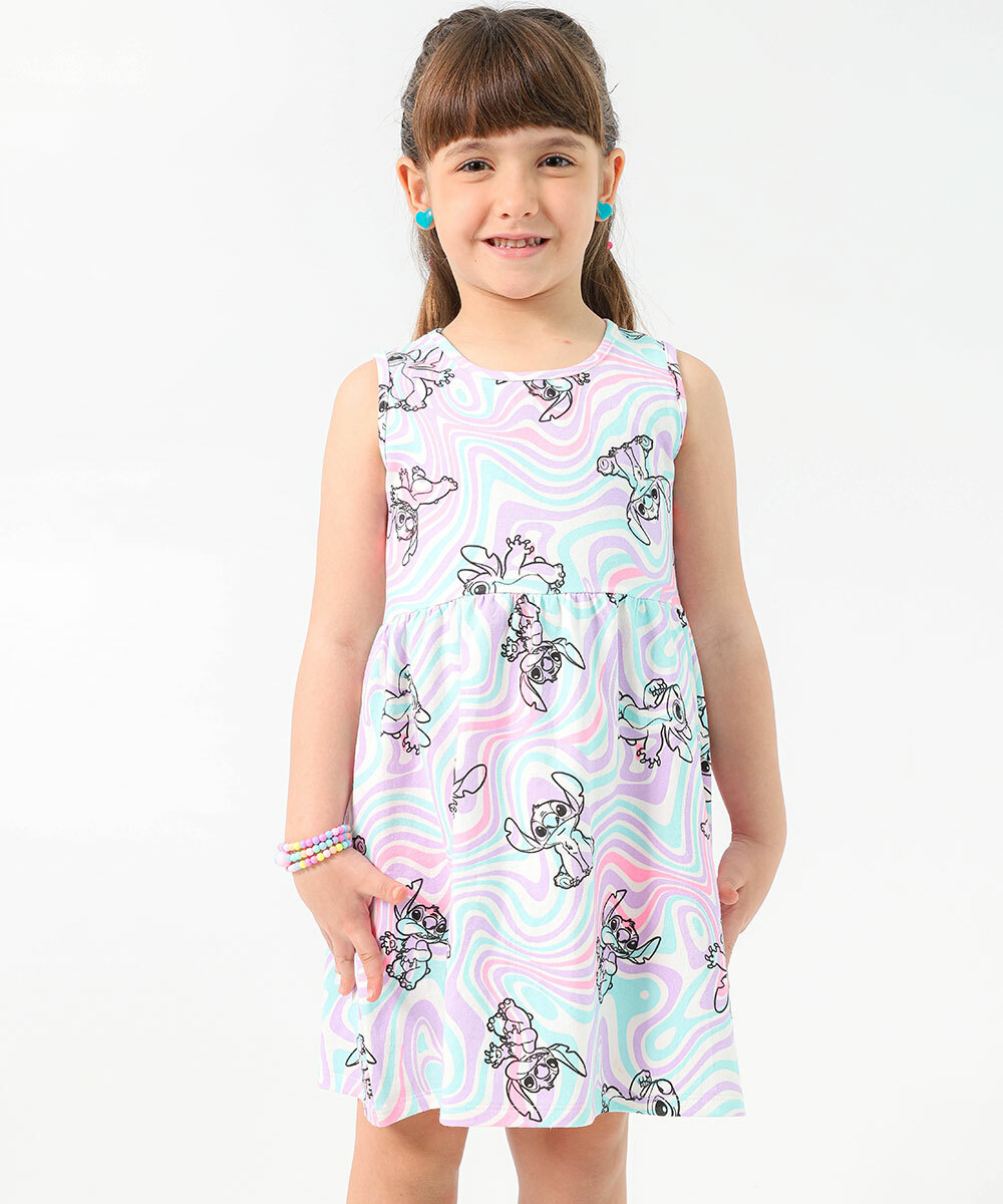 Vestido Infantil Estampa Stitch Tam 4 a 10 Off White