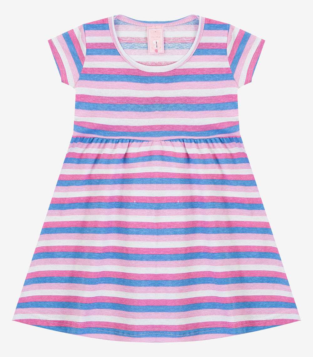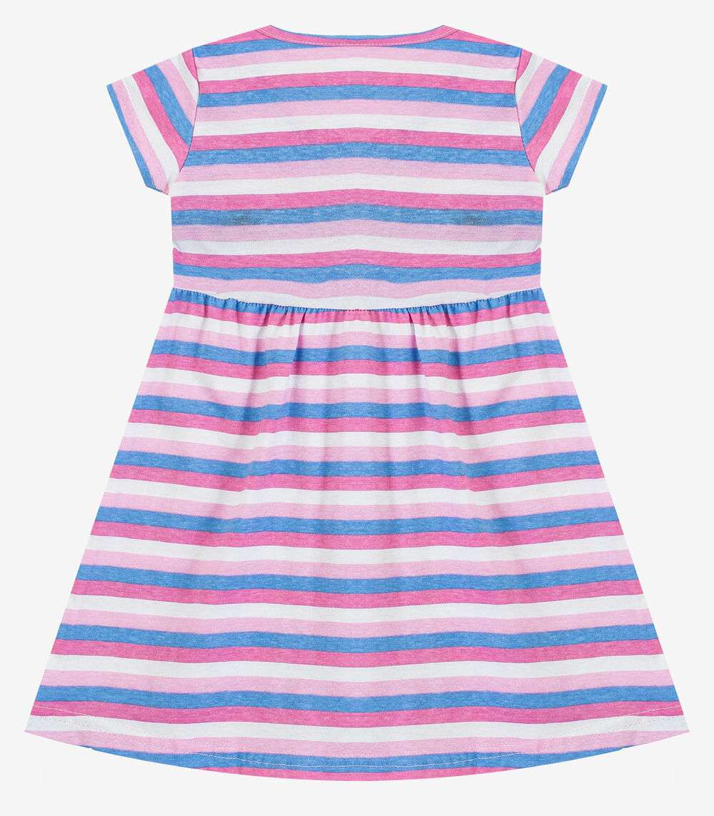 Vestido Infantil Manga Curta Estampado Biju Kids Rosa
