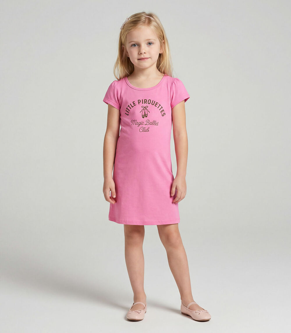 Vestido Infantil Manga Curta Estampado Select Rosa