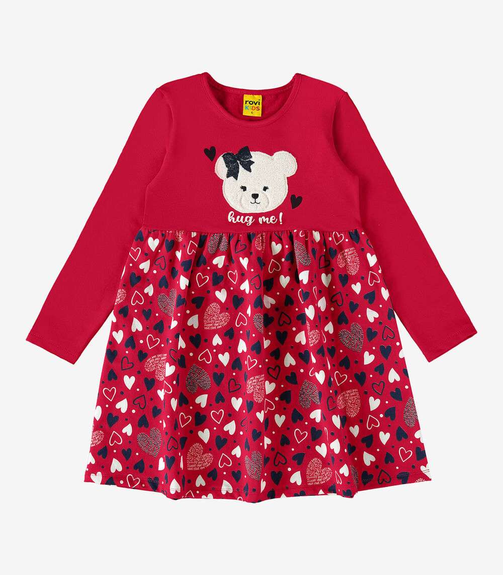 Vestido Infantil Manga Longa Estampado Rovi Kids Vermelho