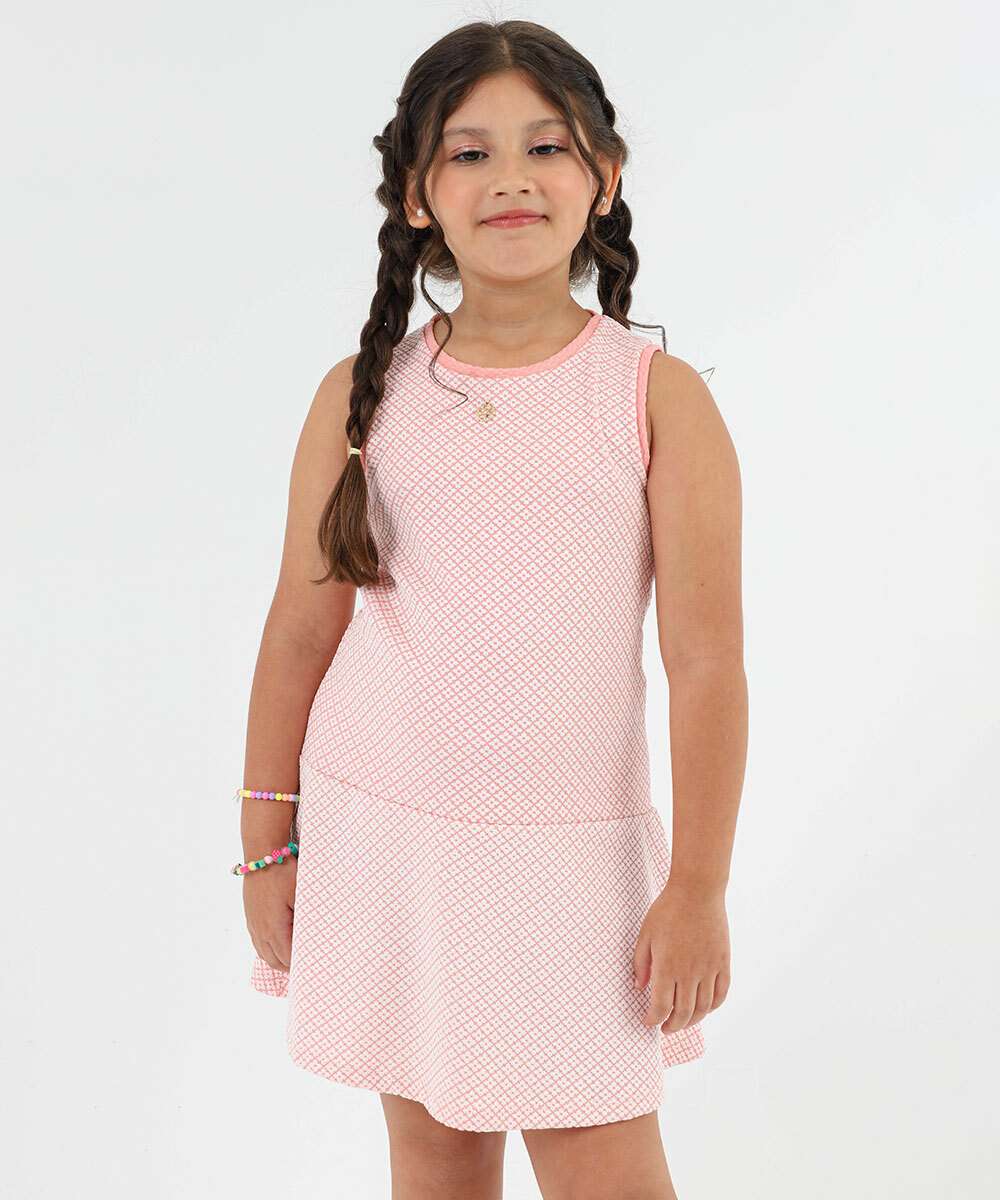 Vestido Infantil Textura Sem Manga Marisa Tam 4 a 10 Rosa