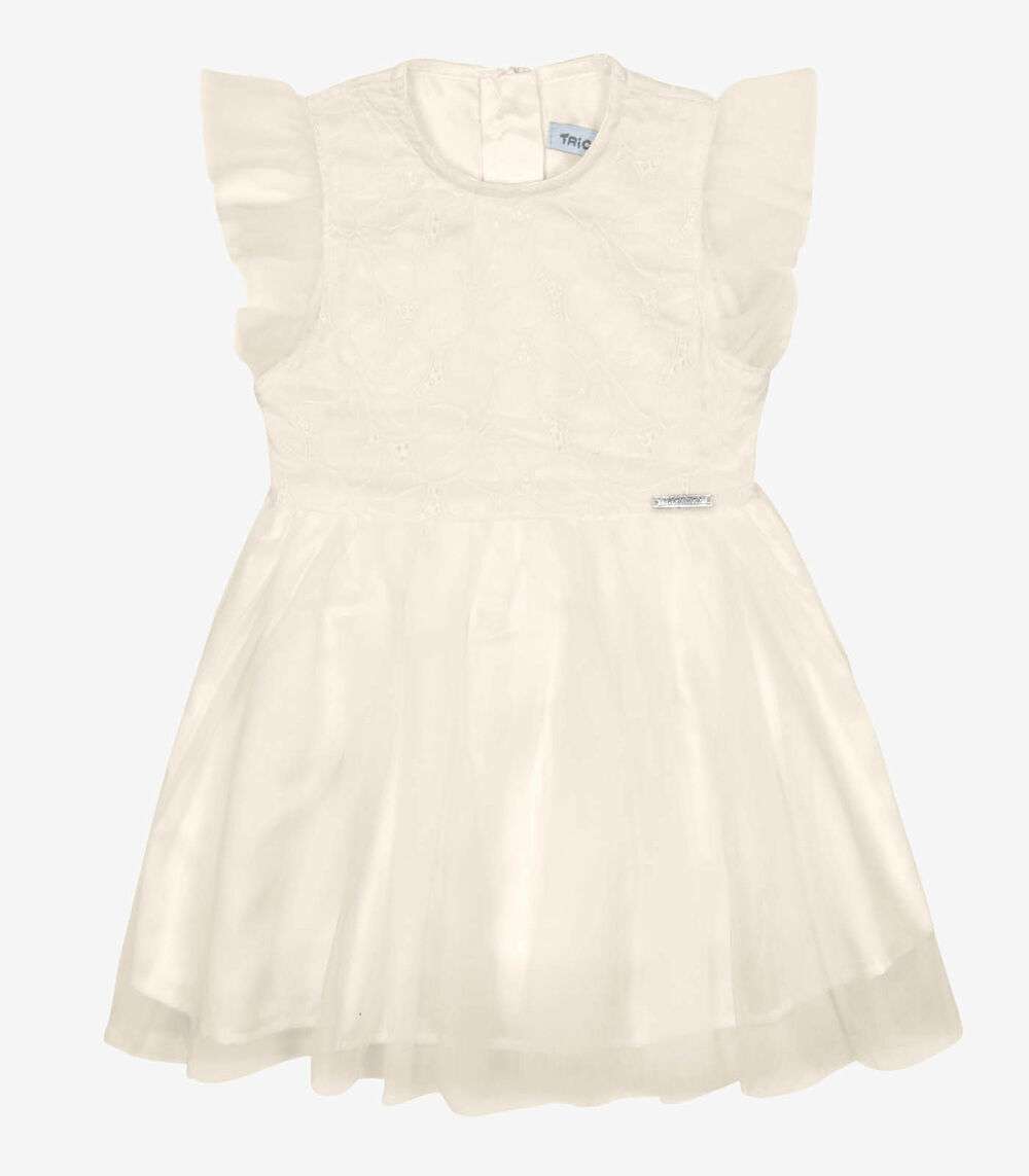 Vestido Infantil Tule Bordado Trick Nick Bege