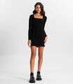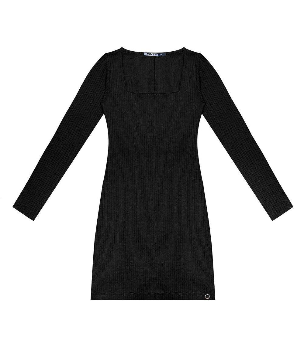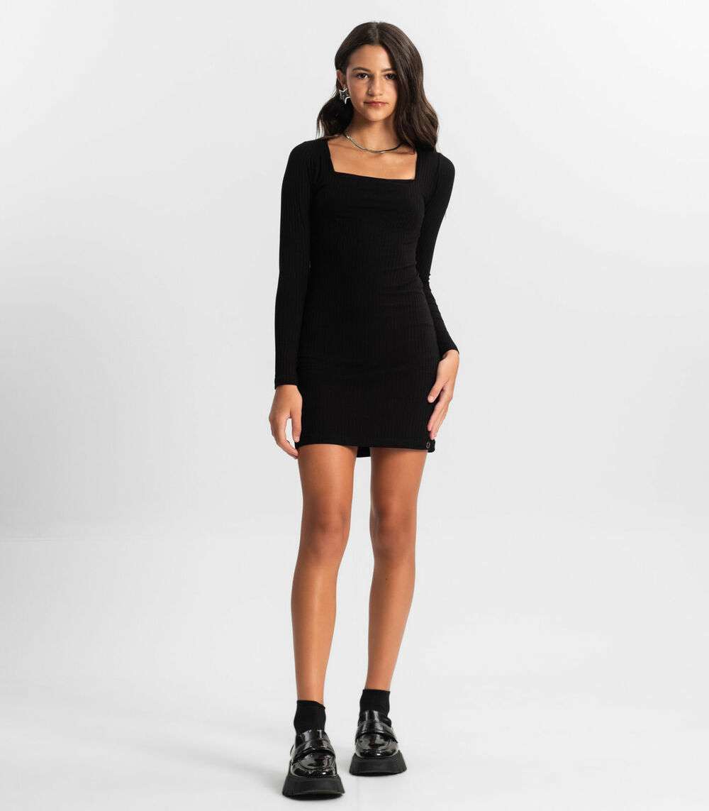 Vestido Juvenil Manga Longa Em Ribana Minty Preto