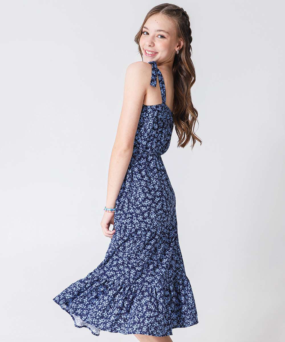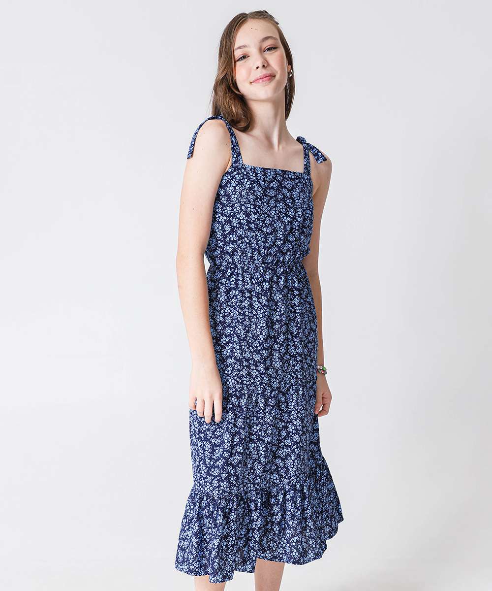 Vestido Juvenil Midi Estampa Flores Marisa Tam 10 a 16 Azul