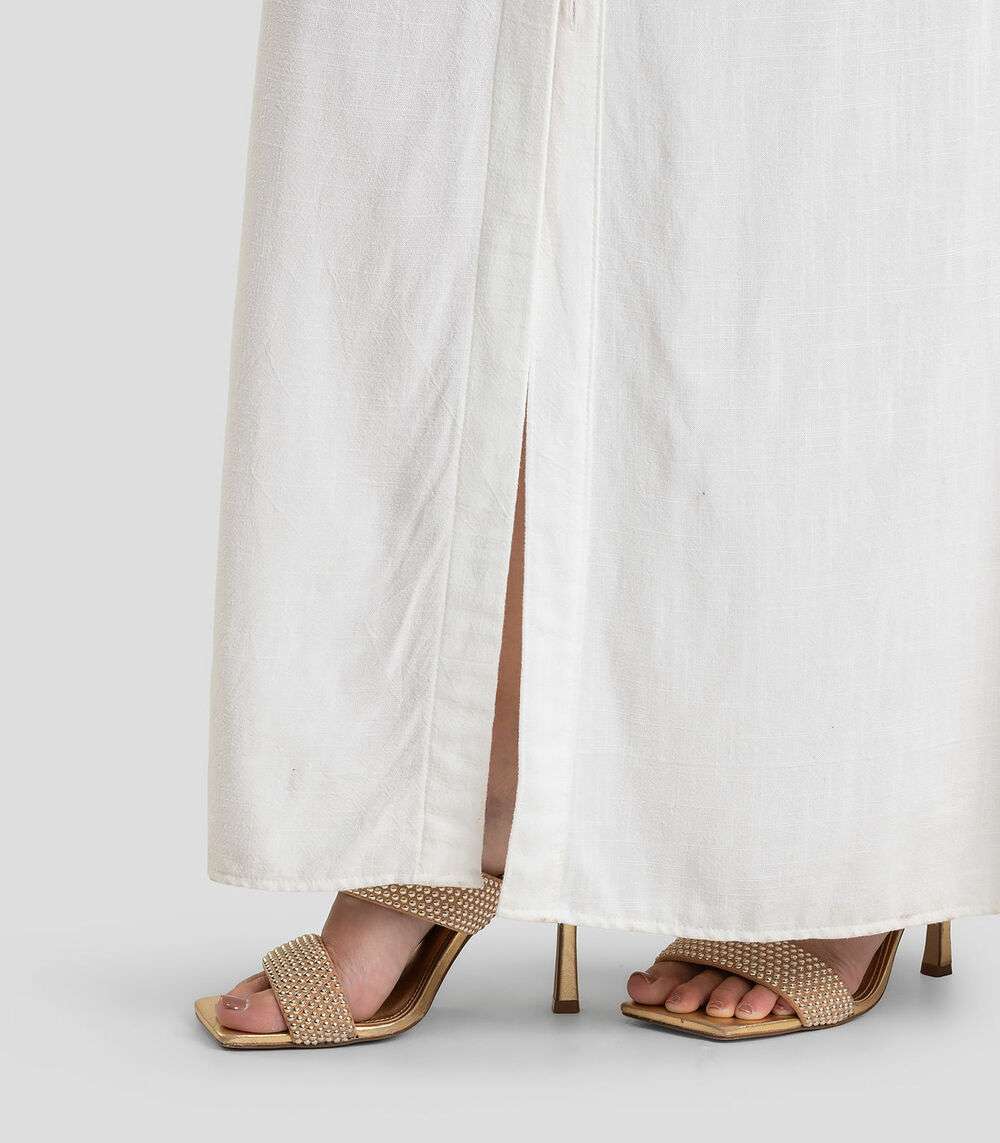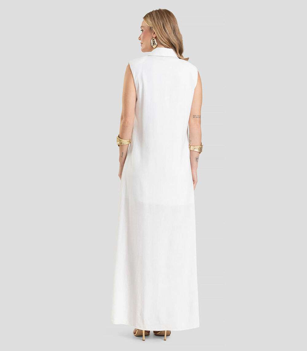 Vestido Longo Feminino em Tecido Linho Dianna Bege