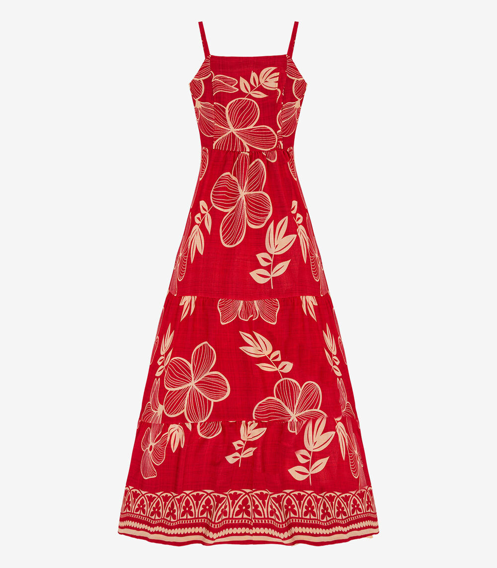 Vestido Longo Feminino Lastex Estampado Select Vermelho