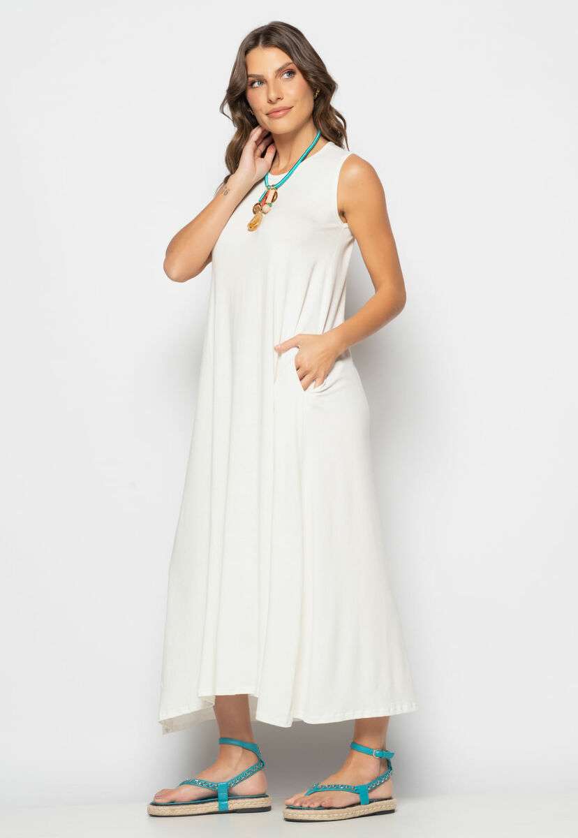 Vestido Longo Regata Com Bolsos Marfim Salvatore