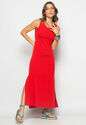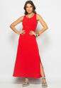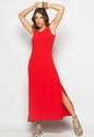 Vestido Longo Regata Com Fenda Canelado Vermelho Salvatore