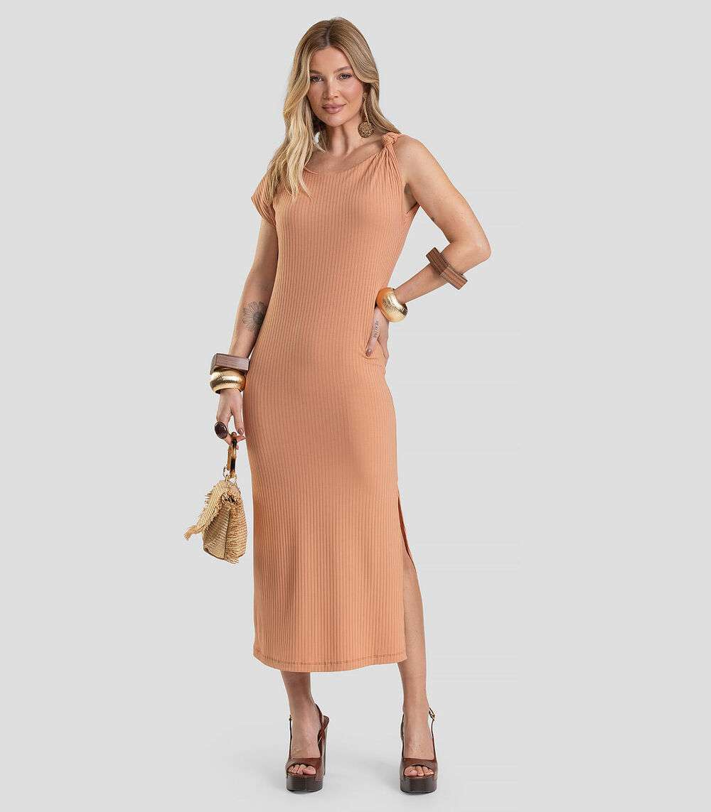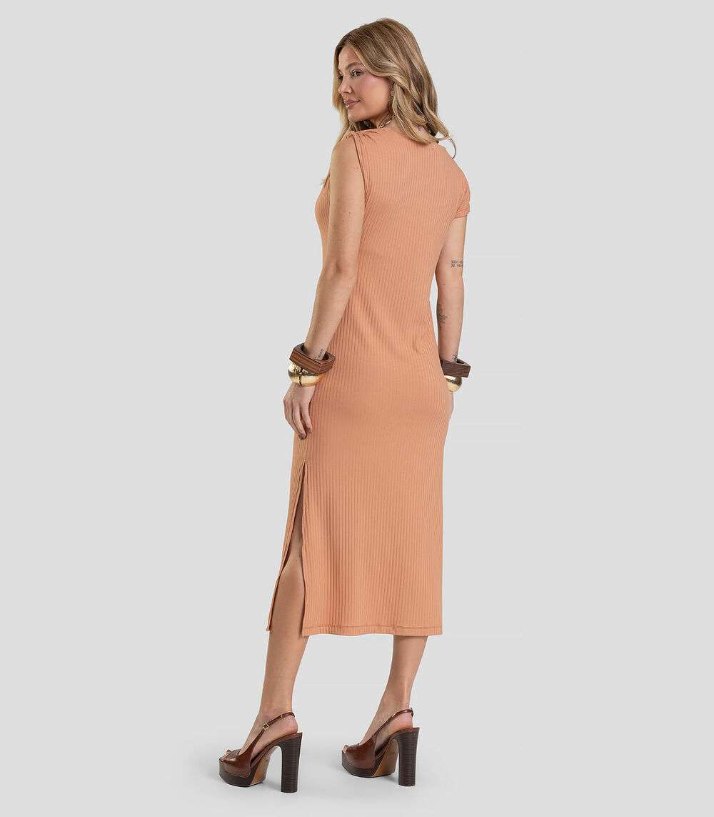 Vestido Midi Canelado Dianna Marrom