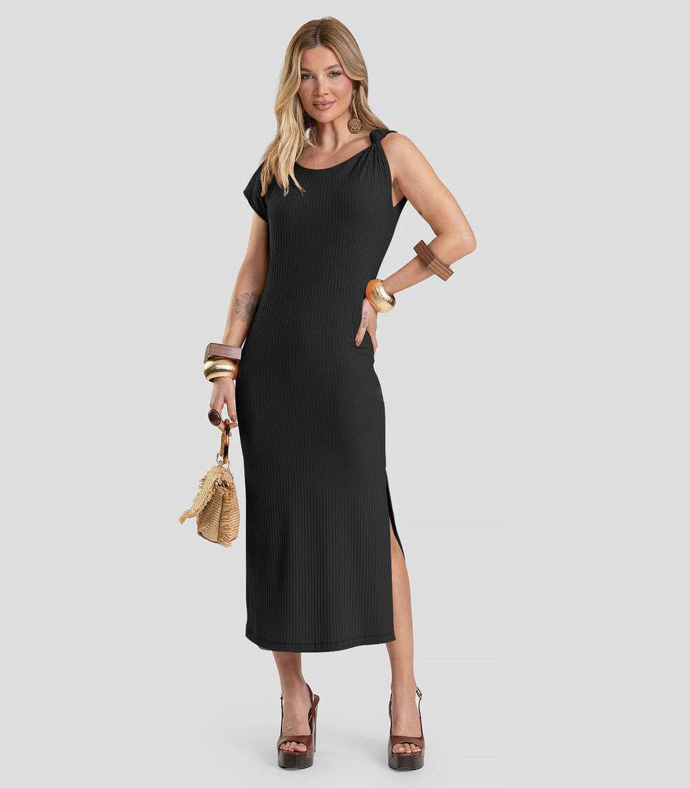 Vestido Midi Canelado Dianna Preto