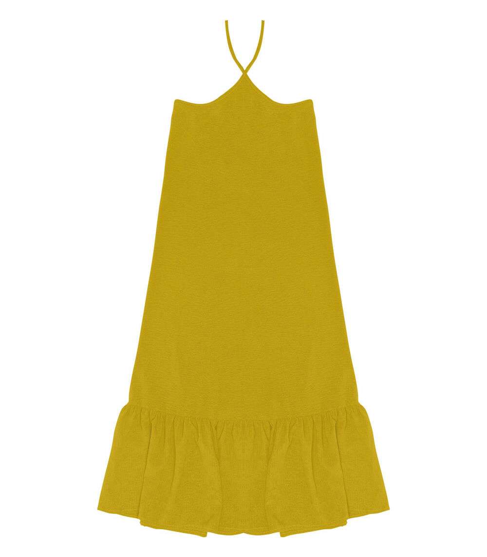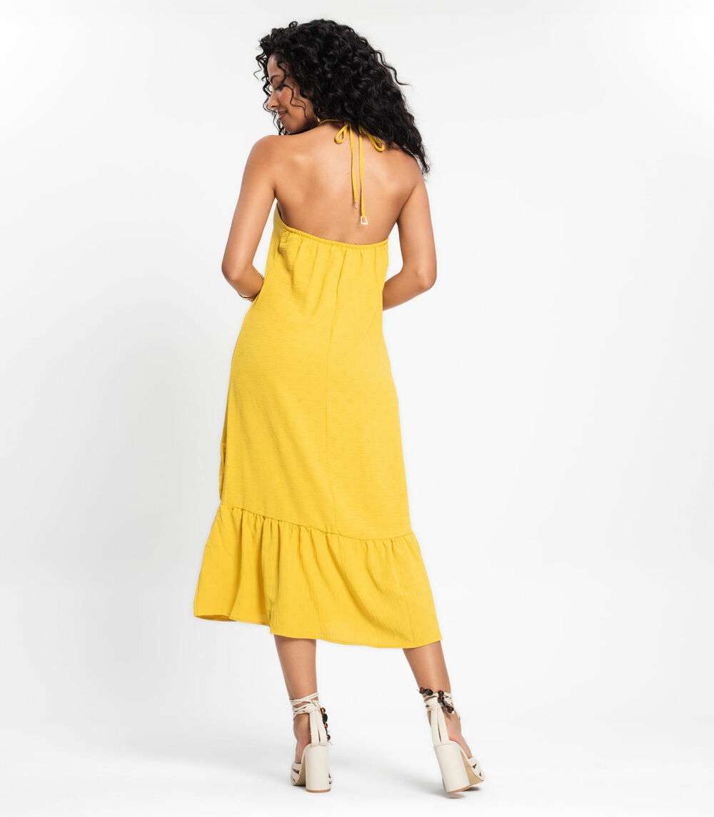 Vestido Midi De Alça E Babados Em Air Flow Rovitex Amarelo