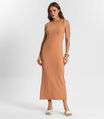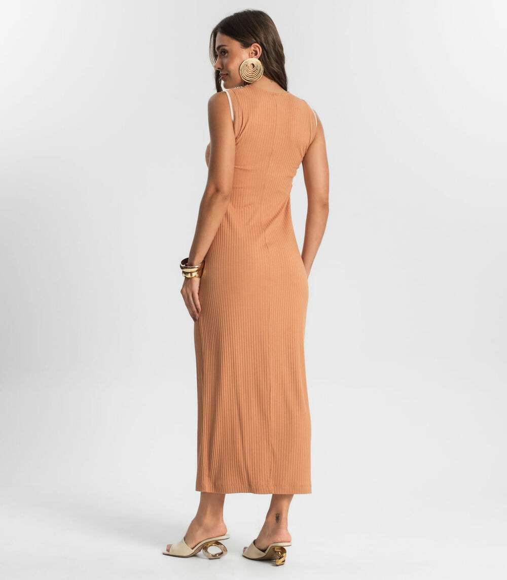 Vestido Midi Em Ribana Canelada Endless Marrom