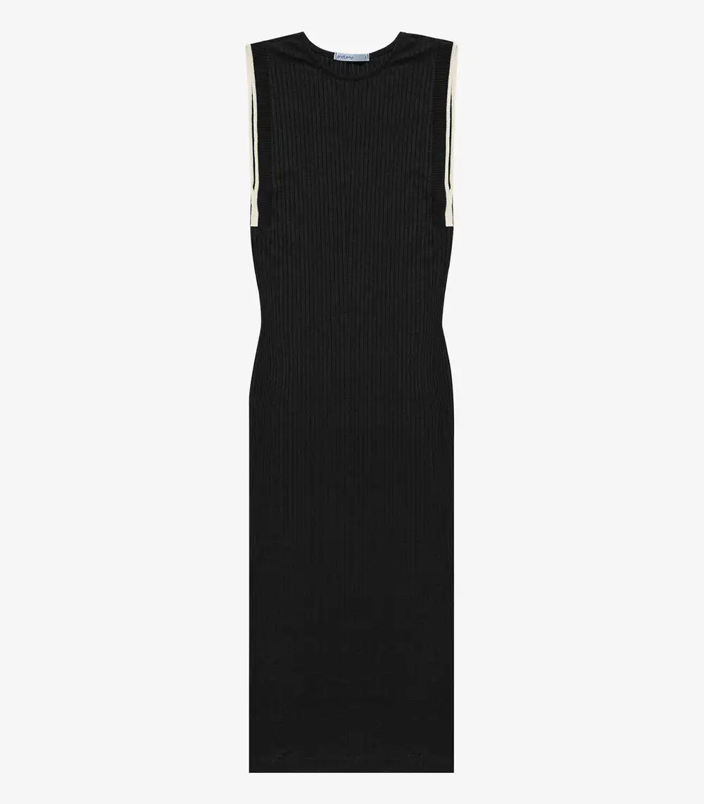 Vestido Midi Em Ribana Canelada Endless Preto