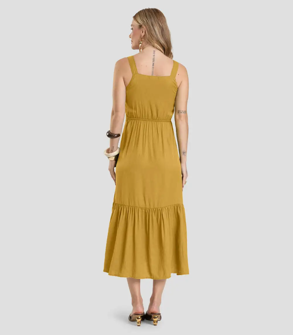 Vestido Midi em Viscose Rajada Dianna Amarelo