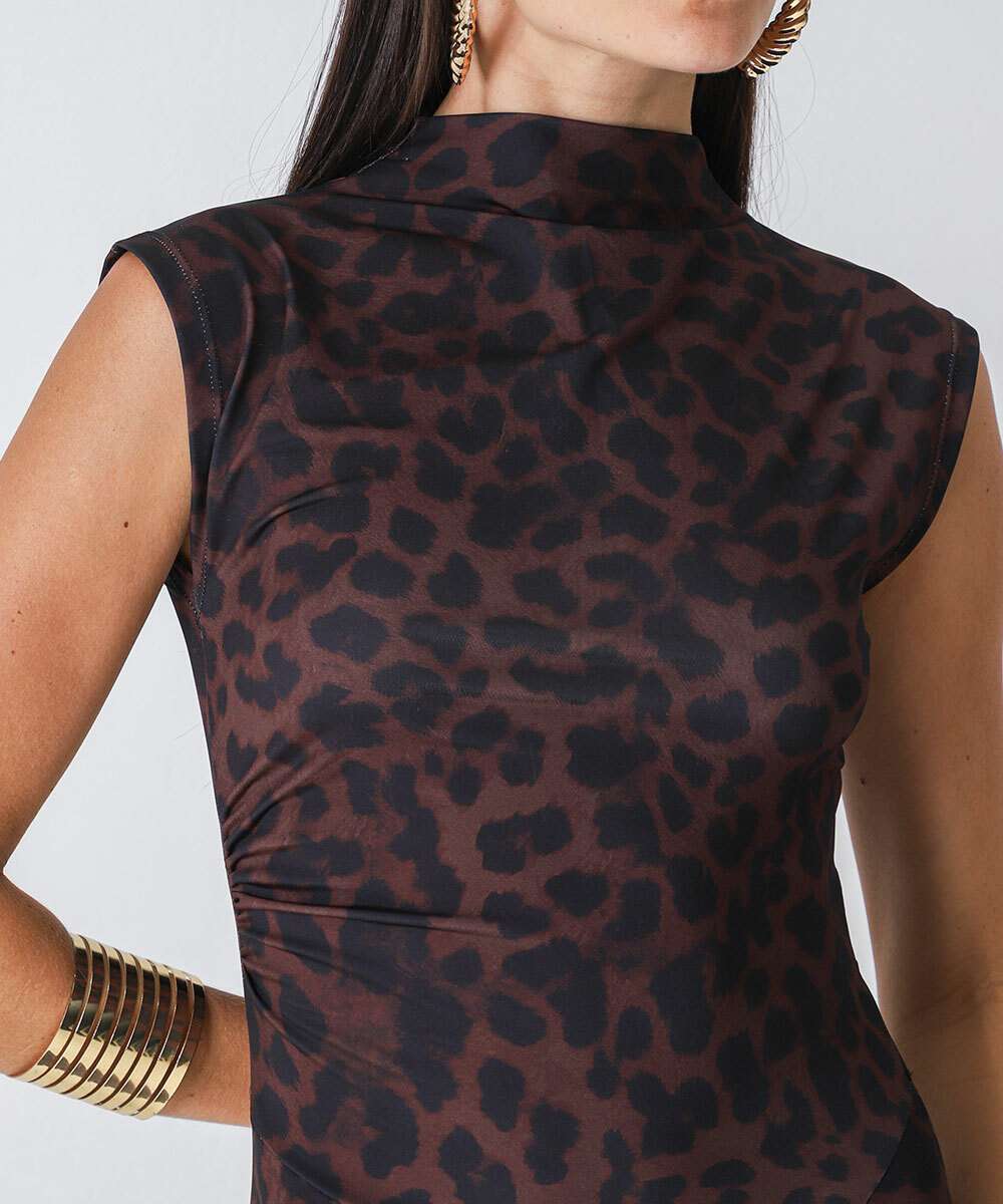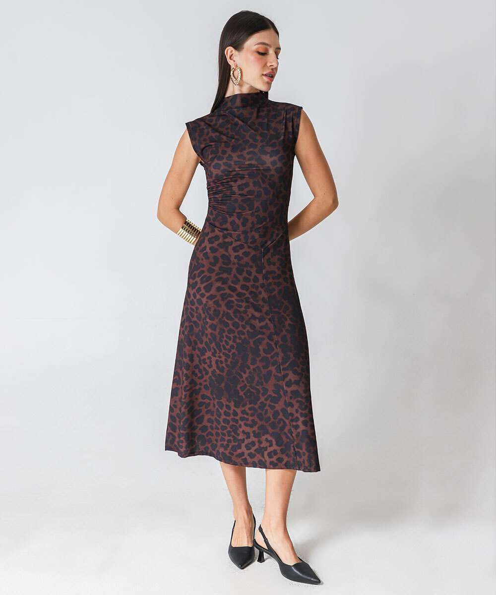 Vestido Midi Feminino Animal Print Marisa Marrom
