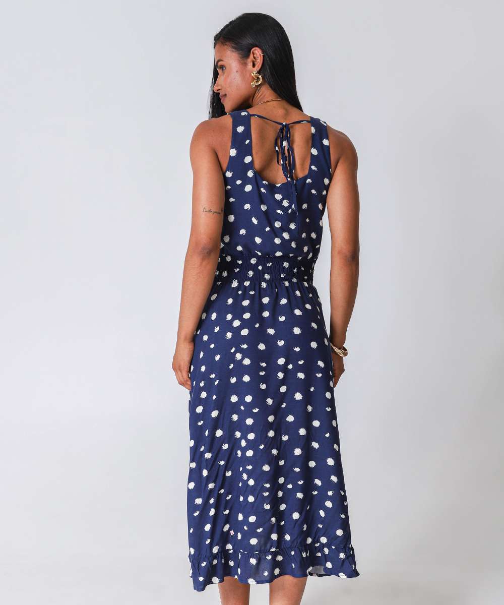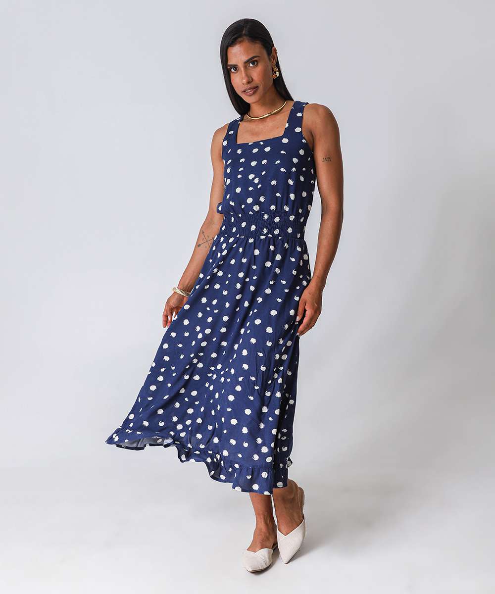 Vestido Midi Feminino Estampa Poá Marisa Azul