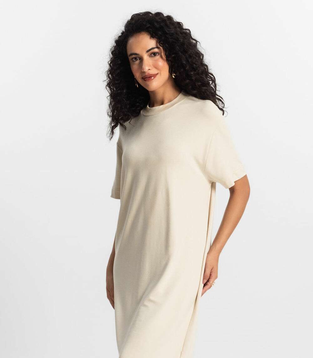 O Vestido Feminino Rovitex, confeccionado em Molecotton de Viscose, oferece conforto e sofisticação em um design versátil. Sua modelagem ampla e comprimento midi garantem um caimento fluido e elegante, ideal para diversas ocasiões. A gola em ribana proporciona um acabamento charmoso, enquanto as mangas curtas próximas ao cotovelo adicionam um toque moderno e diferenciado. Perfeito para composições estilosas e confortáveis!