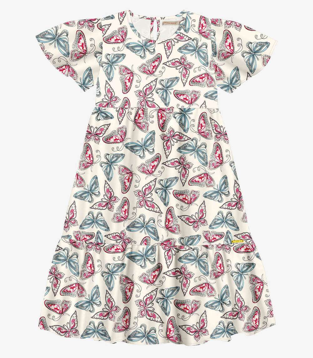 Vestido Midi Infantil Borboletas Trick Nick Bege